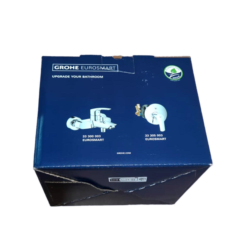 ستضفي زخرفة قرص جروهي يوروسمارت هذا المُثبت على الحائط لمسة من الأناقة على حمامك. تتيح لك الرافعة المقوسة بلطف تغيير درجة حرارة المياه وتدفقها بسهولة ودقة، بينما يقوم المحول التلقائي بتوجيه تدفق المياه من حوض الاستحمام إلى الدش والعكـس. من السهل الحفاظ على طلاء الكروم المبهر جروهي ستارلايت. من خلال نظام جروهي كويك فيكـس سهل الاستخدام، تم تصميم مجموعة القطع هذه بحيث يتم تركيبها دون الحاجة إلى مسامير، مما يجعل التركيب أكثر بساطة ويجعل المظهر الجيد للقطعة الزخرفية يلمع.