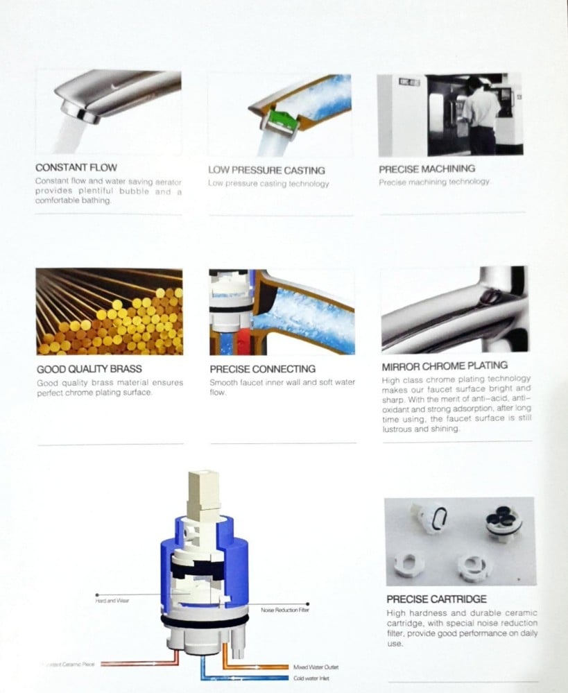 - صنعت لتقاوم عوامل المياه المختلفة من املاح و ترسبات وحرارة وبرودة وضغط مع تصميم عصري يتناسب مع المنازل الحديثة .